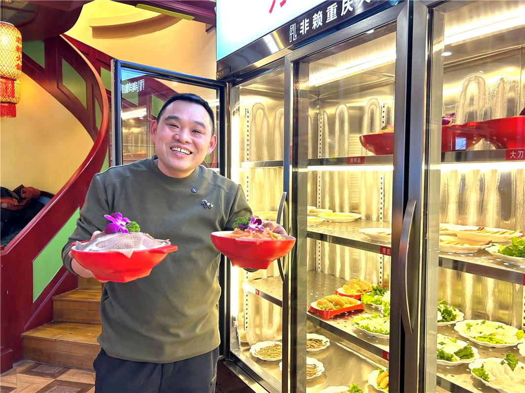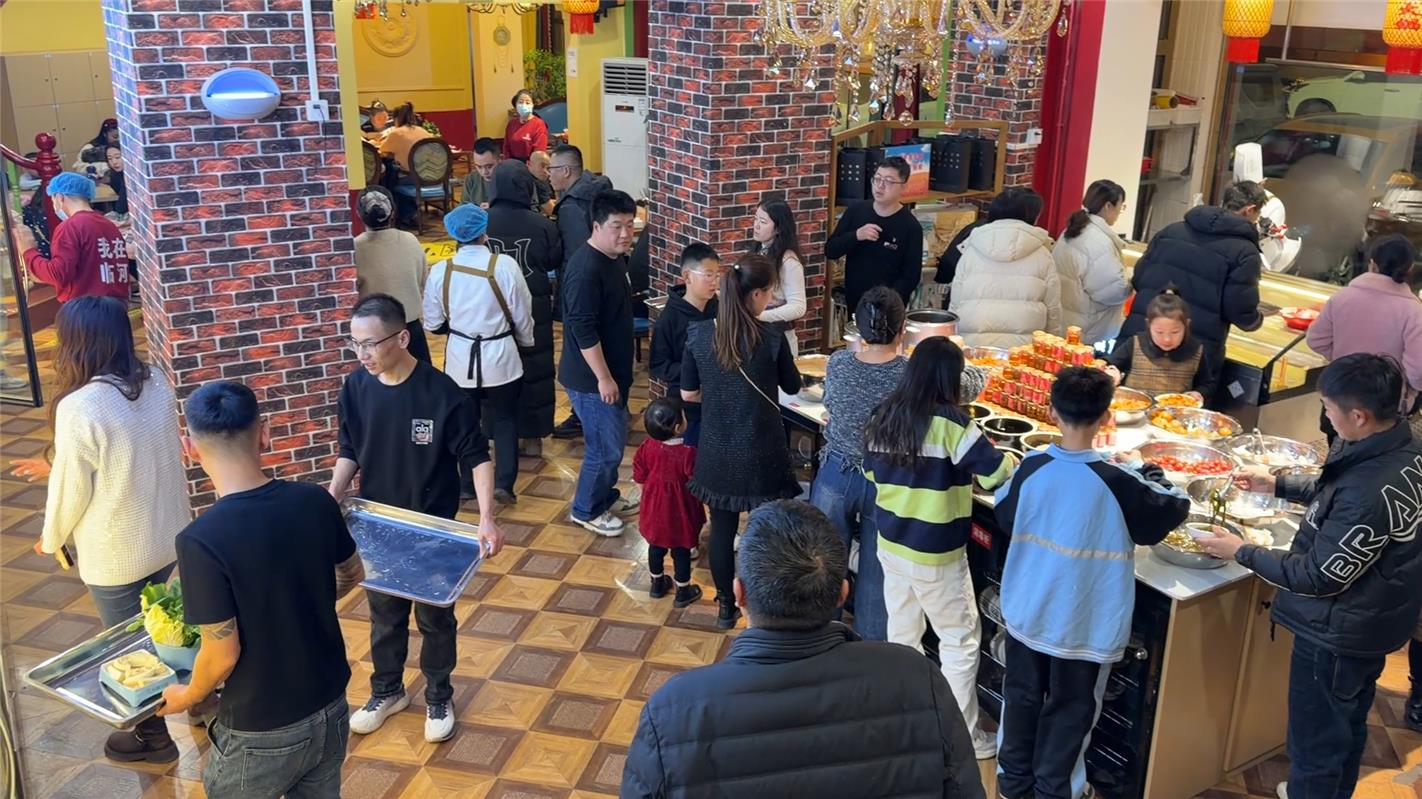 春節(jié)期間,大家對火鍋店的熱情不減。賴甜放心不下生意,便將妻子和孩子都接來巴彥淖爾一起過年。“這個決定沒錯,妻子和孩子也對這里的春節(jié)特別滿意,都想在這里多玩幾天?!辟囂鹦χf。