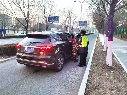 12月20日17時(shí)15分,九原區(qū)交管大隊(duì)第三警務(wù)區(qū)執(zhí)勤民警正駕駛警車在轄區(qū)巡邏清理違停車輛,當(dāng)巡邏至緯四路與經(jīng)二路交叉口時(shí),他們發(fā)現(xiàn)一輛黑色越野車停在緯四路非機(jī)動(dòng)車道內(nèi)且打著雙閃?!翱吹杰嚧蛑p閃燈,想著可能是車上的人有啥困難,我們就把警車開到附近,看到一名年輕男子正在車周圍焦急地來回徘徊,神情特別緊張。”執(zhí)勤民警說。