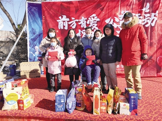 志愿者代表為兩名孩子送來(lái)愛(ài)心壓歲錢和年貨