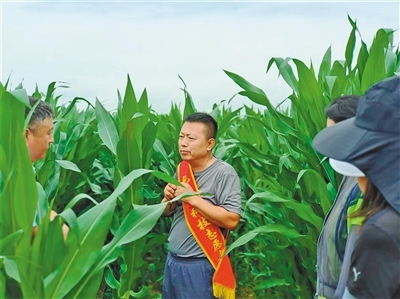 “鄉(xiāng)親們,這就是葉耳,從下往上數(shù)葉耳達到八九片就到了玉米的拔節(jié)期,此時就該追肥了……”包頭市農(nóng)牧科學技術(shù)研究所糧食中心的專家其日格站在田埂上對村民提出的問題逐一講解。