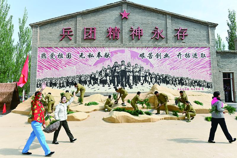 活動(dòng)在歡迎兵團(tuán)戰(zhàn)士的沉浸式演藝場景中開始。“大有作為”農(nóng)事體驗(yàn)、“苦中作樂”兵團(tuán)大鍋飯?bào)w驗(yàn)等,讓活動(dòng)參與者們“穿越”到兵團(tuán)歲月。歌手科爾沁夫演唱了本屆藝術(shù)季主題曲《來到了磴口你就不想走》,將現(xiàn)場氣氛推向高潮。