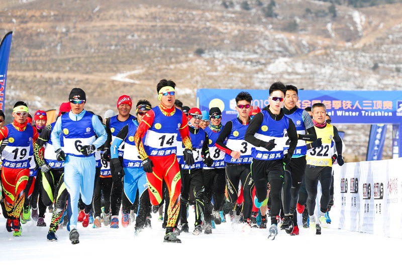 2月24日,參賽選手在冬季鐵人三項賽跑步比賽中。當(dāng)日,2019年全國冬季鐵人三項賽在烏蘭察布市涼城縣岱海國際越野滑雪場開賽,比賽包括跑步、山地自行車和越野滑雪三個比賽項目,設(shè)置男女子精英組和男女子公開組,吸引了來自北京、黑龍江、寧夏等地的120余名選手參賽。這是我區(qū)首次舉辦全國冬季鐵人三項賽,此舉將進(jìn)一步豐富我區(qū)冬季體育運動項目,推動冰雪運動發(fā)展?!?nèi)蒙古日報社融媒體記者 于濤 攝