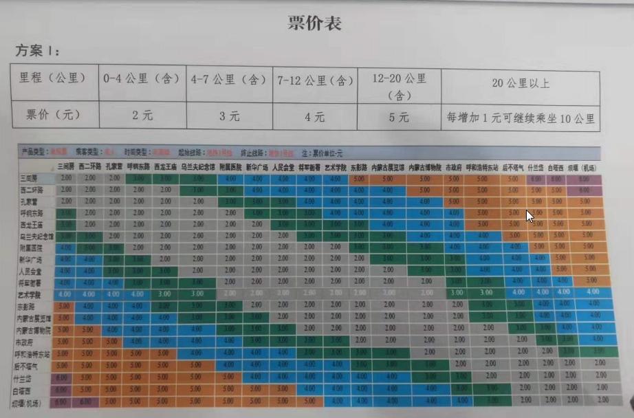 呼和浩特市軌道交通票制票價方案