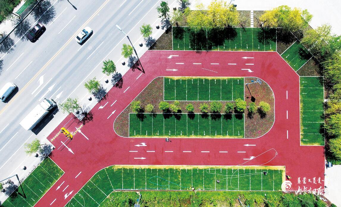 近日,呼和浩特市首個生態(tài)停車場亮相,該停車場位于成吉思汗大街與展覽館東路十字路口西北角,停車場擁有60個停車位,采用節(jié)水、耐踏、低養(yǎng)護的“快樂小草”進行草坪建植,使用美觀、透水性強的彩色透水混凝土進行路面鋪裝。該停車場預(yù)計六月中下旬投入使用,供免費停放車輛。(內(nèi)蒙古日報社融媒體記者孟和朝魯攝 作者:白雪)