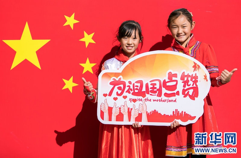 9月29日,內(nèi)蒙古呼和浩特市玉泉區(qū)五塔寺東街小學(xué)學(xué)生在主題快閃活動上,祝福偉大祖國繁榮昌盛。新華網(wǎng)發(fā)(丁根厚攝)