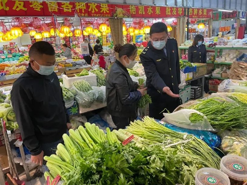 農(nóng)貿(mào)市場作為一個城市的文明窗口,長期以來,因生鮮、蔬菜等商品品種繁多、價格變動頻繁,便民市場菜品價格管理一直讓人“頭疼”。在食為天便民市場,市場監(jiān)督管理局工作人員主要查看經(jīng)營者經(jīng)營商品或提供服務是否實行明碼標價或明碼實價以及自制價格牌是否及時更新,要求商戶出售的實際價格,不得高于公示價格,加強價格自律、倡導誠信經(jīng)營,為群眾營造一個公開、透明、規(guī)范的購物環(huán)境。