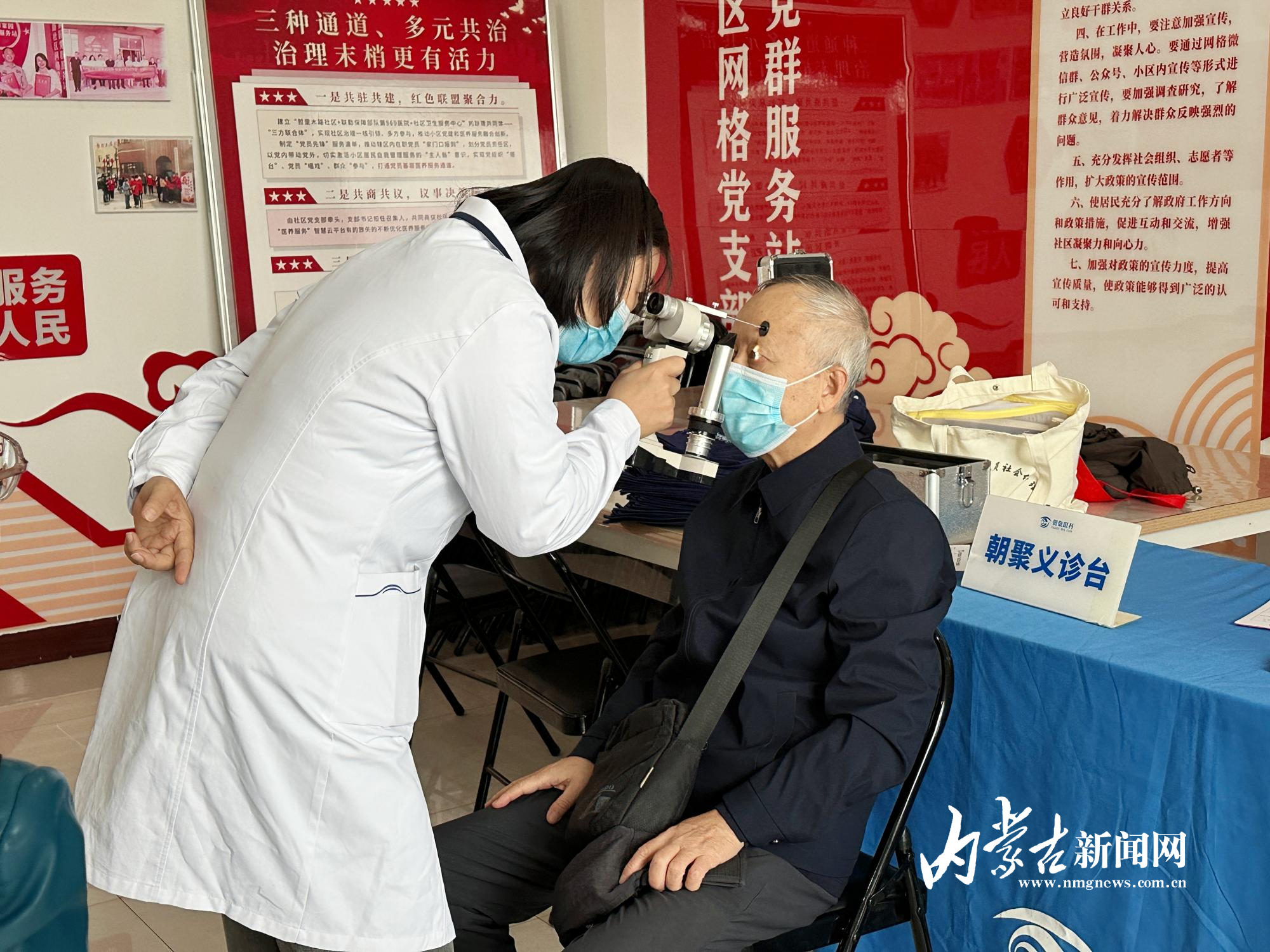 “醫(yī)生,我最近看報紙總覺得字發(fā)虛,是不是白內(nèi)障又加重了?”“您別著急,先坐好,我?guī)湍屑?xì)查查眼底?!?0月10日上午,呼和浩特市新城區(qū)海拉爾路街道哲里木路社區(qū)戎輝小區(qū)活動室內(nèi)暖意融融,醫(yī)護(hù)人員正耐心地為居民做眼部檢查。當(dāng)日,哲理木路社區(qū)聯(lián)合內(nèi)蒙古朝聚眼科醫(yī)院在這里開展眼科義診活動。