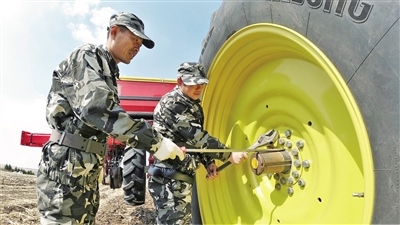 螺絲、輪胎和線路都要認(rèn)真檢查,該檢修的檢修,該上油的上油,農(nóng)機(jī)保養(yǎng)好了,春播才不會(huì)耽誤事兒。4月15日,在呼倫貝爾農(nóng)墾大河灣農(nóng)牧場有限公司,到處能看到職工們忙碌的身影。職工們搶抓農(nóng)時(shí),備化肥、選種子、修機(jī)具,一派繁忙的備耕景象。(記者 李新軍 )