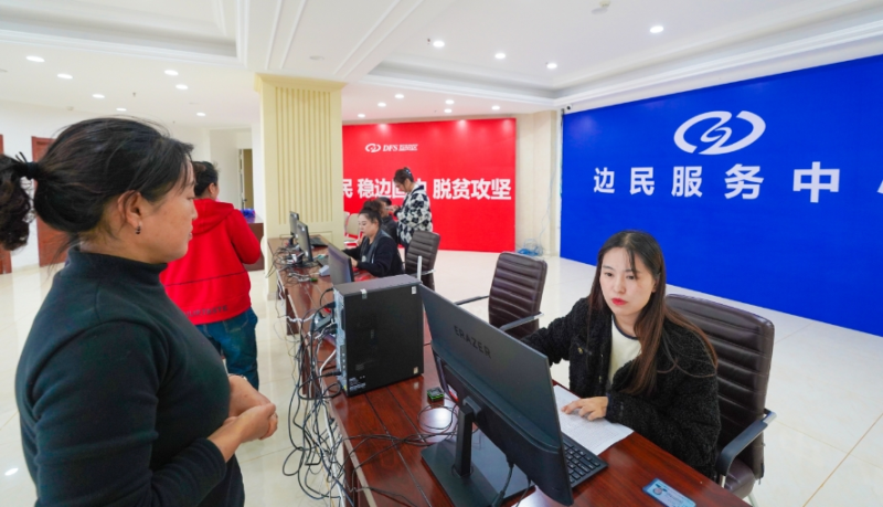圖為邊民在滿洲里中俄互市貿(mào)易區(qū)進(jìn)行交易申報(bào)。