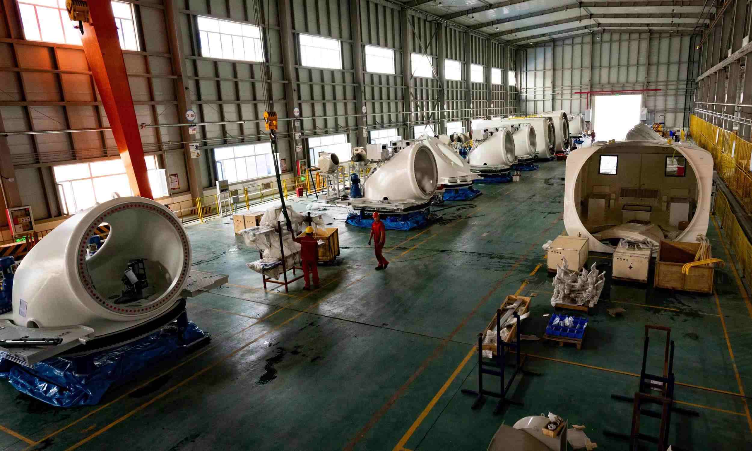 金風(fēng)科技公司工人在安裝風(fēng)機(jī)主機(jī)。邱金鵬攝