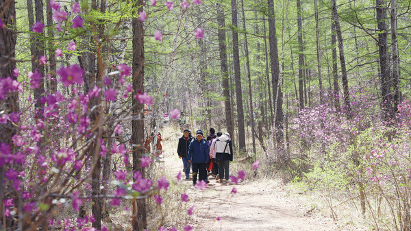 游客徜徉阿爾山森林花海