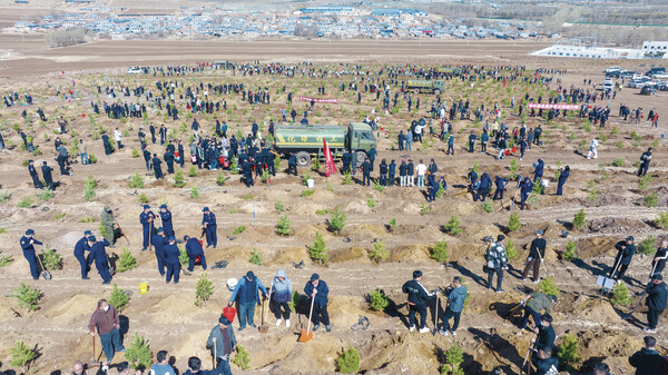科右前旗柳樹川村義務(wù)植樹現(xiàn)場(chǎng)
