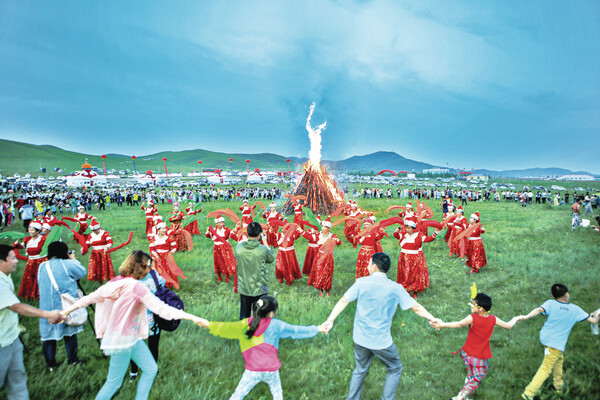 舞臺之上,以音樂為媒,搭建起友誼的橋梁;舞臺之下,游客與牧民們手牽著手,隨著音樂的節(jié)奏起舞,歡聲笑語匯聚成一片歡樂的海洋?!斑@是我們第一次來到那達(dá)慕、第一次參加草原音樂節(jié),和來自五湖四海的朋友歡聚在一起,感覺如同家人一般。音樂讓我們之間沒有距離,唯有歡笑與溫暖。”北京市的游客李婉秋難掩內(nèi)心的激動之情。