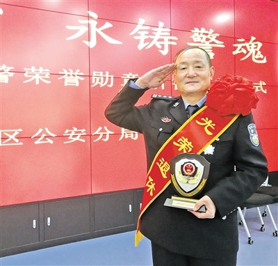 1月8日,在首個中國人民警察節(jié)到來之際,呼和浩特市玉泉區(qū)公安分局舉行“不忘初心 永鑄警魂”——授予退休民警榮譽(yù)勛章和新警入警宣誓儀式。今年60歲的楊建恒神采飛揚(yáng)、豪情依舊,當(dāng)他身著警服、步履鏗鏘地接過退休民警榮譽(yù)勛章時(shí),如獲至寶。