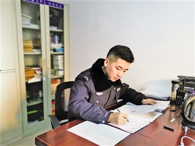 “我當(dāng)人民警察還不到一年,沒想到就趕上了中國人民警察節(jié),太榮幸了。在這里,我祝愿所有的人民警察節(jié)日快樂,平平安安。”1月8日,呼和浩特市新城區(qū)公安分局西街派出所治安民警楊國清激動地說。2020年4月,23歲的楊國清正式成為西街派出所的一名治安民警,出警處警、處理案件成為他的日常工作。入職前,警校畢業(yè)再加上經(jīng)過一段時(shí)間的實(shí)習(xí),楊國清認(rèn)為這些工作應(yīng)該很容易,可當(dāng)他真正走上工作崗位后才發(fā)現(xiàn),并不像自己想象的那么簡單,需要學(xué)習(xí)的地方還很多。在工作中,他總是比別人多付出一份辛苦,不斷學(xué)習(xí),不斷請教,在實(shí)踐中積累經(jīng)驗(yàn),增強(qiáng)業(yè)務(wù)能力?!爱?dāng)作完第一份筆錄,簽上自己名字的那一刻,我才真正感覺到自己肩上的責(zé)任重大?!睏顕甯嬖V記者。除了日常處理案件外,楊國清和搭檔3天值一次班,一值就是24小時(shí)。只要接到報(bào)警,他們會第一時(shí)間趕到現(xiàn)場進(jìn)行處理。打架斗毆、偷盜搶劫、鄰里糾紛……無論是深夜還是凌晨,哪里有警情他們就奔向哪里。警察的工作不僅辛苦還很危險(xiǎn),與家人也聚少離多。當(dāng)記者問到是否后悔選擇這個職業(yè)時(shí),楊國清堅(jiān)定地說:“我從小的夢想就是當(dāng)一名警察,保護(hù)人民、扶危救困,全力以赴維護(hù)一方平安。每當(dāng)聽到一句感謝的話時(shí),我覺得一切付出都是值得的。”