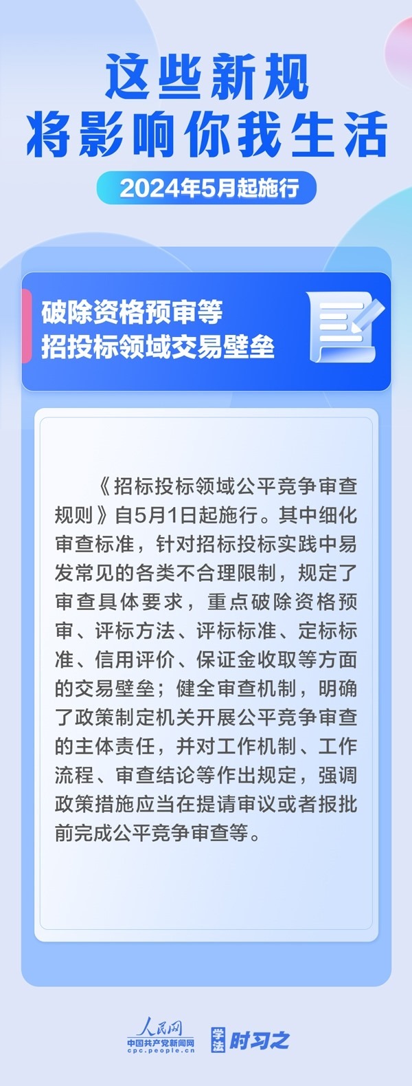 促進非銀行支付行業(yè)健康發(fā)展;首次對社會組織名稱進行統(tǒng)一規(guī)定;破除資格預審等招投標領(lǐng)域交易壁壘……5月起,這些新規(guī)施行,將影響你我生活。