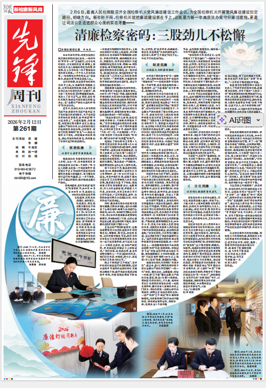 2026年2月12日《檢察日?qǐng)?bào)》05版刊發(fā)了《清廉檢察密碼:三股勁兒不松懈》的文章,報(bào)道了新年剛開局,各地檢察機(jī)關(guān)就把廉政建設(shè)抓在手上,這既是為新一年高質(zhì)效辦案守好廉潔底線,更是讓司法公正走進(jìn)群眾心里的實(shí)在考量,并特別報(bào)道了內(nèi)蒙古自治區(qū)敖漢旗檢察院“開年第一課”,讓“廉潔修身、廉潔辦案”的理念直抵人心。