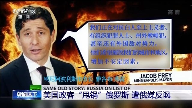 “今日俄羅斯”電視臺(tái)記者:說白了,俄羅斯、白人至上主義者、販毒集團(tuán)我們這些外國勢(shì)力都一直在等待。等著讓一個(gè)明尼蘇達(dá)州的警察,殺害了一個(gè)手無寸鐵的非洲裔美國人,直到這在美國掀起軒然大波,這劇本還真是又臭又長??!
