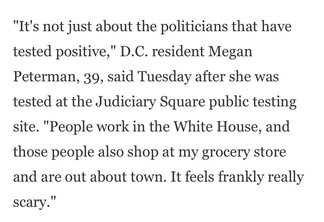華盛頓居民梅根·彼得曼在當?shù)貢r間6日做了核酸檢測,她說:“最近許多白宮官員確診新冠肺炎,白宮工作人員也可能來過我的商店購物,說實話挺嚇人的?!薄 ?/p>
