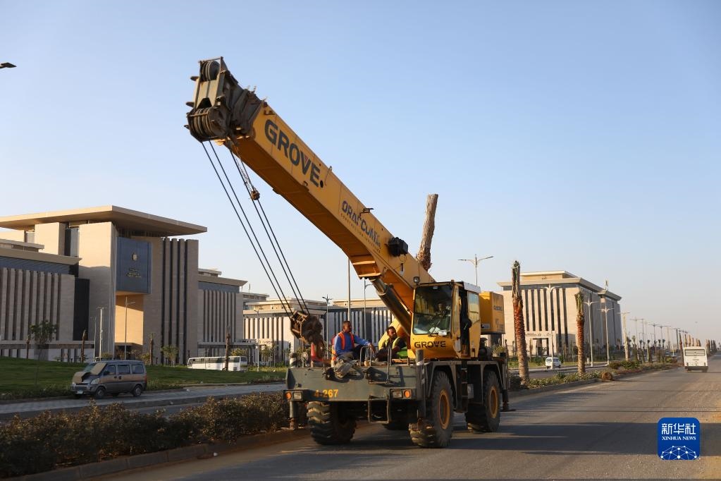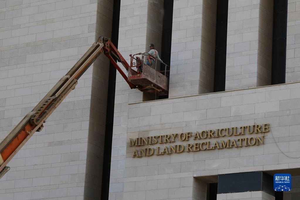 11月3日,工人在埃及新行政首都的農(nóng)業(yè)與土地改造部新大樓外施工。新華社發(fā)(艾哈邁德·戈馬攝)