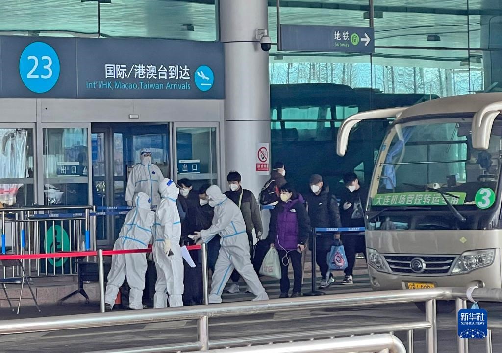 3月14日,乘坐臨時(shí)航班抵達(dá)大連周水子國(guó)際機(jī)場(chǎng)的中國(guó)公民準(zhǔn)備前往隔離酒店。新華社發(fā)(大連機(jī)場(chǎng)提供)