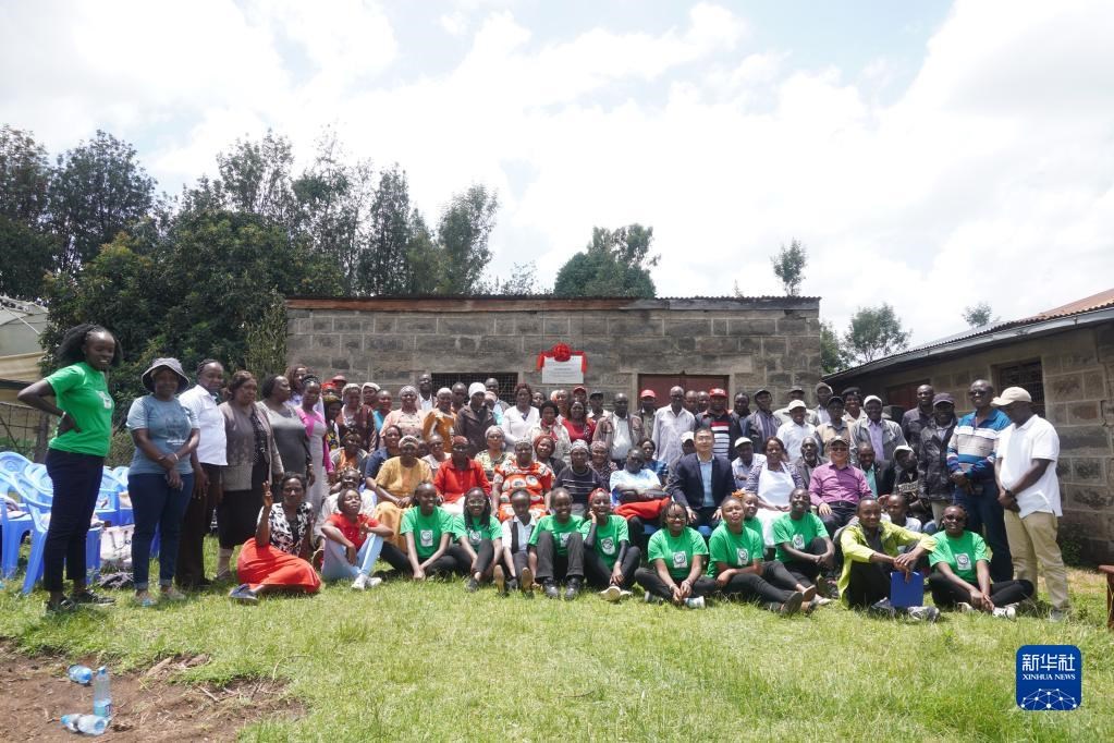這是10月18日在肯尼亞納庫魯郡馬坦吉提薩村拍攝的掛牌儀式現(xiàn)場。新華社發(fā)(李學(xué)敏攝)