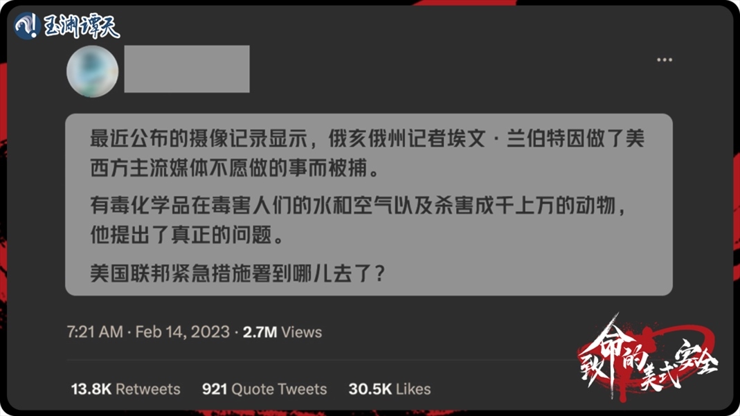 2月3日,俄亥俄州一列運(yùn)載有毒化學(xué)品的列車(chē)脫軌并著火,久久不能確定下來(lái)的污染范圍和程度,最終引發(fā)了全世界的擔(dān)憂(yōu)。