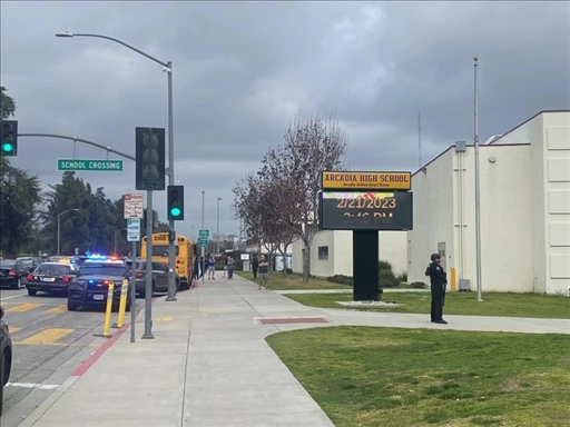 新華社洛杉磯2月24日電(記者高山)當(dāng)?shù)貢r間2月21日下午3點多,美國加利福尼亞州洛杉磯縣阿卡迪亞高中即將放學(xué),突然間大批警車呼嘯而至,封鎖了各個入口,荷槍實彈的警察在直升機掩護(hù)下沖入校園。教室內(nèi),師生們緊張地躲到桌下。校園外,家長們焦急地等待消息。