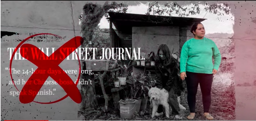 《華爾街日報》在文章中提到厄瓜多爾科卡科多-辛克雷水電站附近兩名當?shù)厝?,對她們的話語斷章取義,以此暗示讀者,當?shù)厝恕皩χ袊髽I(yè)心懷不滿”以及中國公司“強迫當?shù)貑T工加班且工作環(huán)境惡劣”。