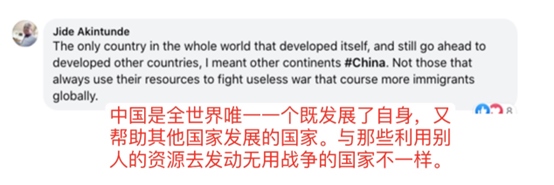 網(wǎng)友盧克蒙·奧拉德潑·法布恩米說:“撒謊者已經(jīng)被指出來了,他們批評中國制造的一切,但被人發(fā)現(xiàn)他們的指責毫無根據(jù)。中國干得漂亮?!?/p>