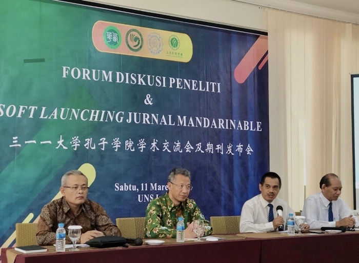 人民網(wǎng)雅加達(dá)3月12日電 (記者張杰)11日下午,三一一大學(xué)孔子學(xué)院學(xué)術(shù)期刊《Mandarianable》發(fā)布會(huì)及四周年生日會(huì)在梭羅隆重舉行。西華大學(xué)校長(zhǎng)劉樹(shù)根、三一一大學(xué)學(xué)術(shù)事務(wù)副校長(zhǎng)(尤努斯)Mr.Yunus教授、研究與創(chuàng)新副校長(zhǎng)(坤卓落)Mr.Kuncoro教授、合作與信息副校長(zhǎng)(夏啟丹)Mr. Sajidan教授、成都市政府代表潘文吉、張友東、羅會(huì)成、三一一大學(xué)部分院系代表等嘉賓出席了本次發(fā)布會(huì)。