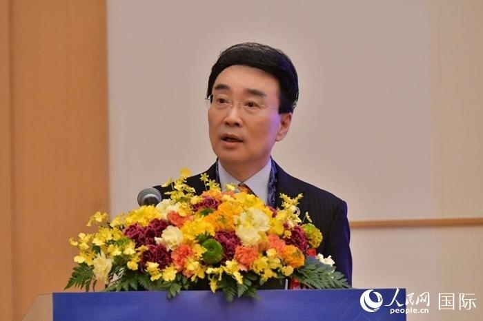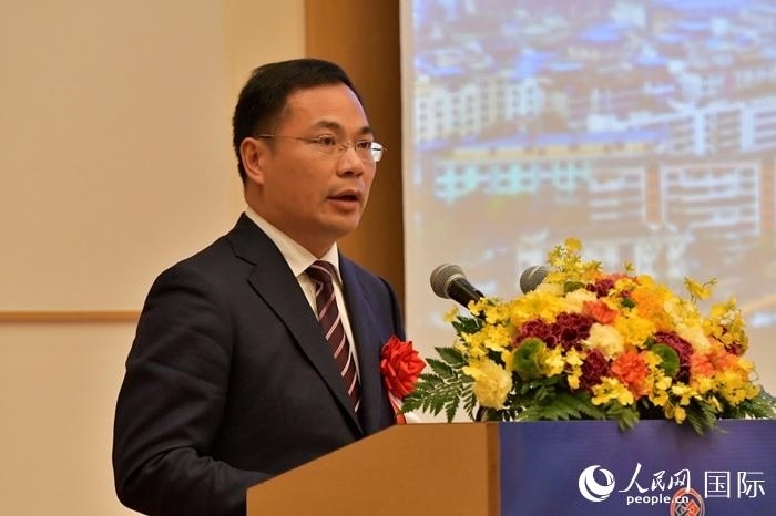 中國駐日本大使館經濟商務公使代表申宇致辭。人民網 滕雪攝