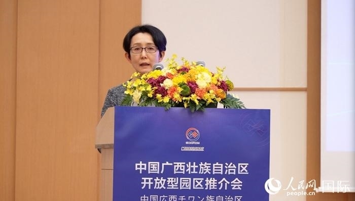 中國(廣西)自由貿易試驗區(qū)工作辦公室專職副主任白嵐做主題推介時,向日本經濟產業(yè)界分享了廣西的四大發(fā)展機遇。