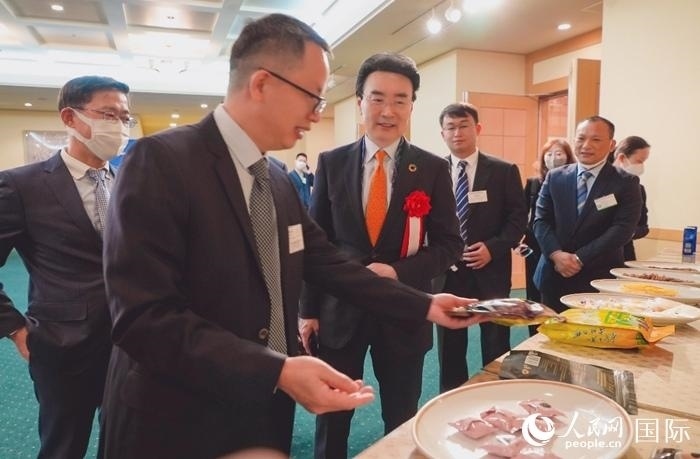 廣西經貿代表團與日本國際貿易促進協會進行現場交流。人民網 滕雪攝