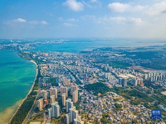 這是海南省洋浦經(jīng)濟(jì)開(kāi)發(fā)區(qū)所在的環(huán)新英灣地區(qū)(無(wú)人機(jī)照片,2月26日攝)。新華社記者 蒲曉旭 攝
