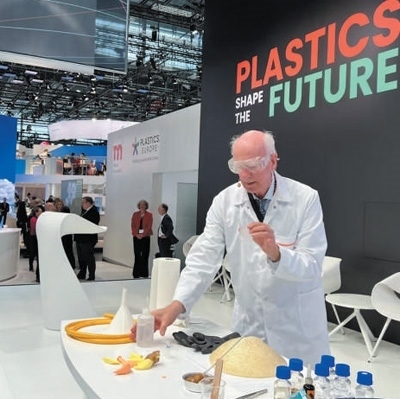 2022年10月20日,在德國杜塞爾多夫塑料展上展示的可再生塑料和回收技術。本報記者 李 強攝