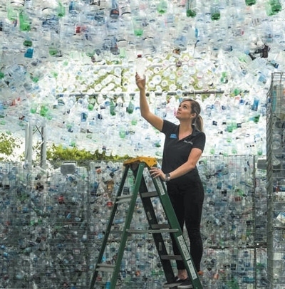 英國藝術家在倫敦動物園打造名為“廢棄物空間”的藝術裝置,鼓勵人們停止使用一次性塑料瓶??巳R爾·多赫蒂攝(人民視覺)