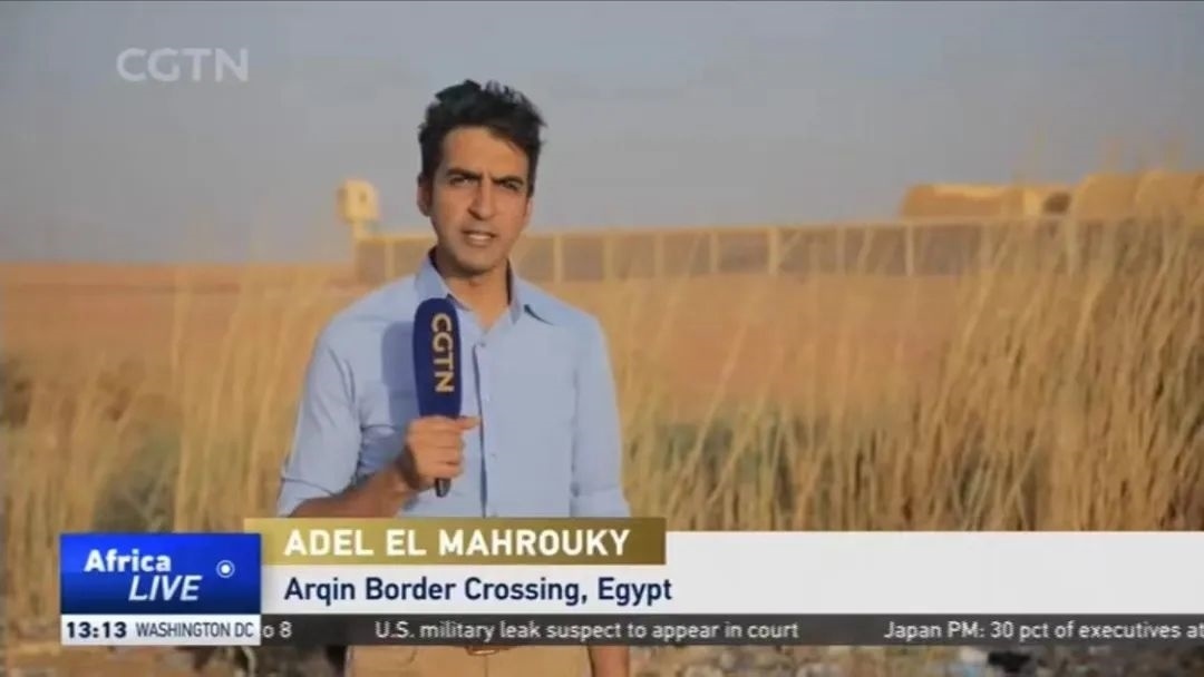 △CGTN報道員Adel在埃及與蘇丹邊境口岸報道撤僑情況