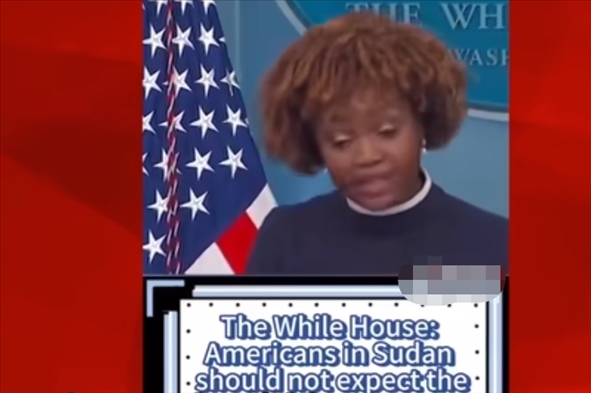 為證明自己的觀點(diǎn),安柏然在視頻中展示了幾個(gè)視頻片段。其中一個(gè)片段顯示,一名美媒主持人報(bào)道稱(chēng),美軍在夜間出動(dòng)直升機(jī)將大約100名美國(guó)外交官及其家屬?gòu)奶K丹撤出。還有一段視頻顯示,白宮新聞秘書(shū)卡里娜·讓-皮埃爾近日在記者會(huì)上稱(chēng),美國(guó)駐蘇丹使館4月16日曾發(fā)布安全警告稱(chēng),由于喀土穆安全局勢(shì)存在不確定性且機(jī)場(chǎng)已關(guān)閉,美國(guó)公民此時(shí)不應(yīng)期待美國(guó)政府協(xié)調(diào)撤僑?!爱?dāng)務(wù)之急是,在蘇丹的美國(guó)公民要自行安排,在困難情況下確保自身安全。我們建議美國(guó)公民就地避難……”她稱(chēng)。