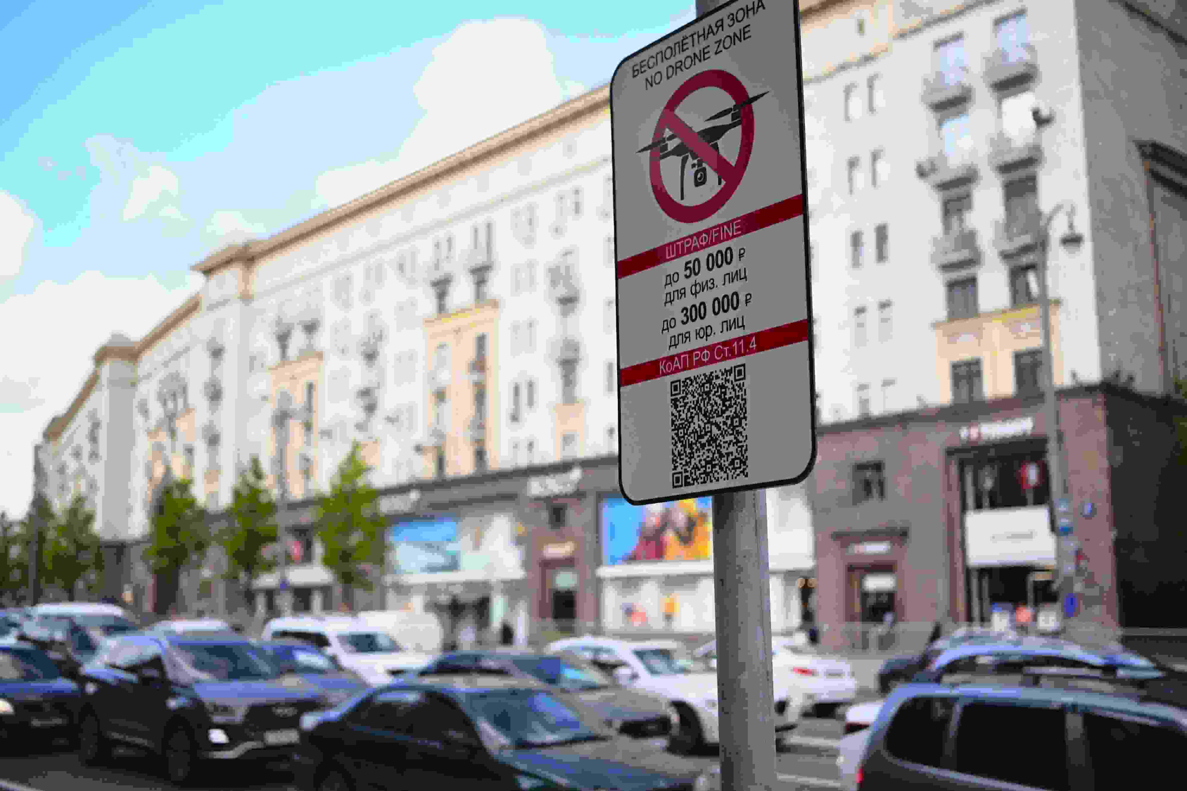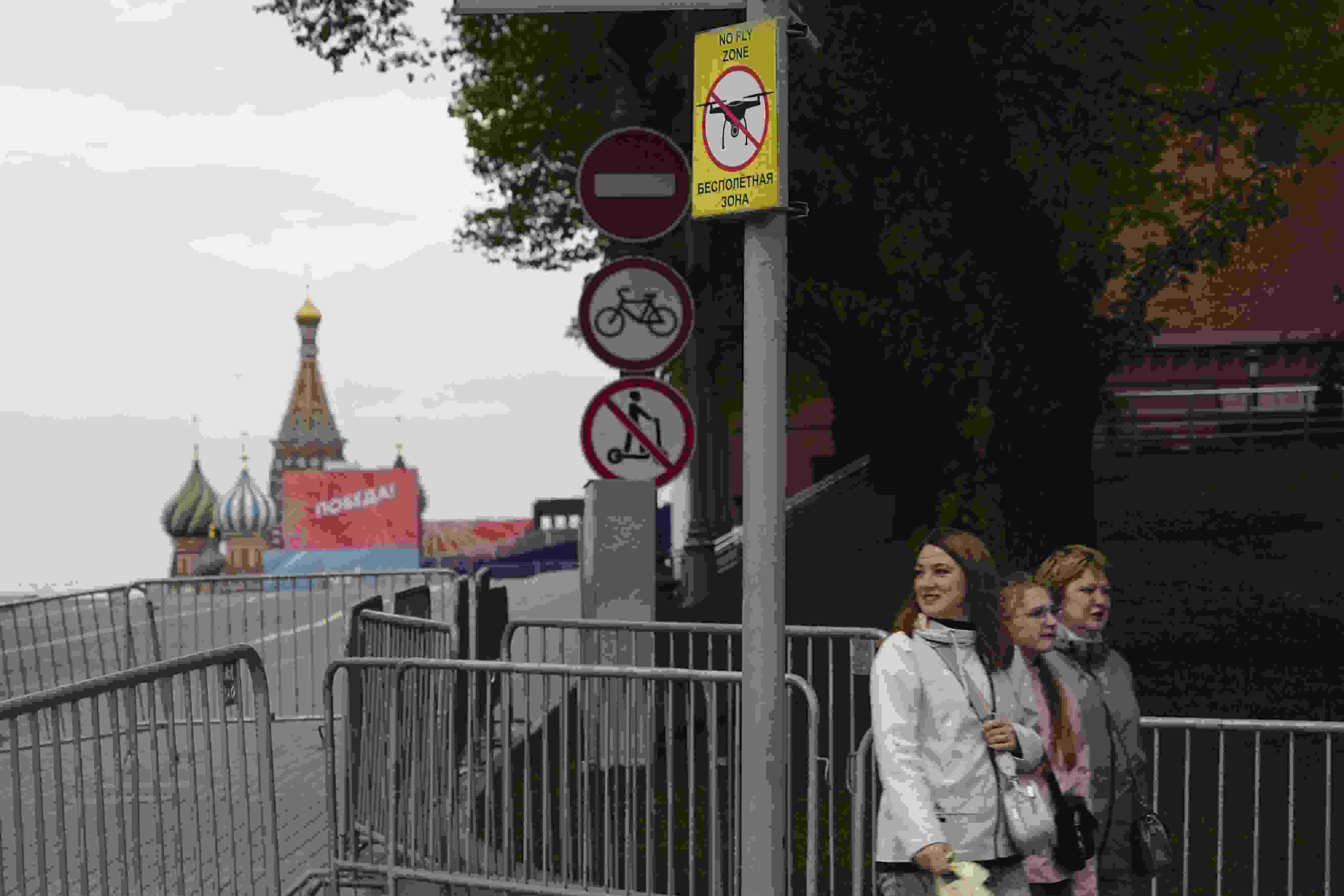 當?shù)貢r間2023年5月3日,俄羅斯莫斯科,莫斯科市中心懸掛的“無人駕駛飛機禁飛區(qū)”的標志,禁止無人機在該地區(qū)飛行??死锬妨謱m遭無人機襲擊后,莫斯科市長宣布禁止未經(jīng)授權(quán)的無人機在俄羅斯首都上空飛行。 視覺中國