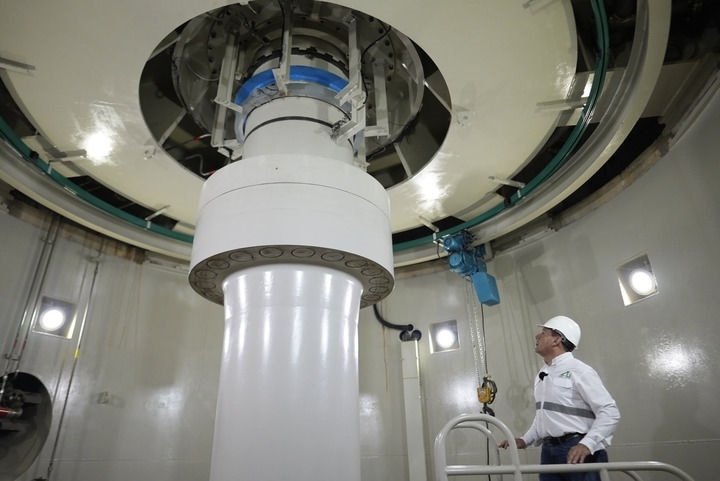 帕圖卡三水電站內(nèi),水電站運營總經(jīng)理內(nèi)爾松·奧爾特加在檢查設(shè)備運行狀況。(戴維·德拉帕斯攝)