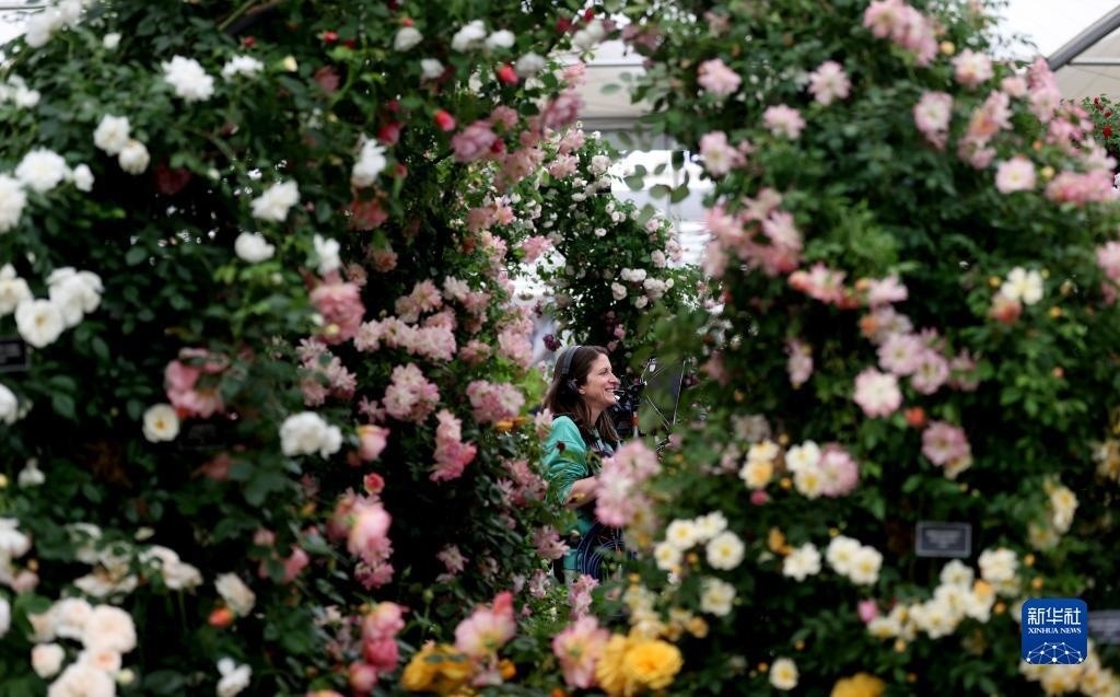 5月22日,一名工作人員在英國(guó)倫敦參加切爾西花展媒體日。