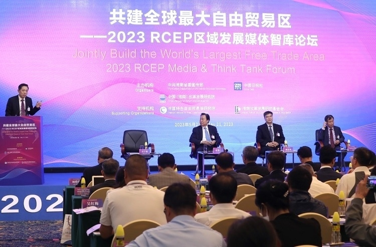 人民網(wǎng)海口5月21日電 (記者苑基榮)《區(qū)域全面經(jīng)濟伙伴關(guān)系協(xié)定》(以下簡稱RCEP)正式生效實施一年多來,其促進區(qū)域貿(mào)易投資增長與經(jīng)濟復(fù)蘇的紅利不斷釋放。5月21日,中共海南省委宣傳部、中國日報社、中國(海南)改革發(fā)展研究院在??诠餐鬓k“共建全球最大自由貿(mào)易區(qū)——2023 RCEP區(qū)域發(fā)展媒體智庫論壇”。來自中國、韓國、日本、新加坡、菲律賓、老撾、緬甸、柬埔寨、馬來西亞、印度尼西亞、澳大利亞、英國等國家的主流媒體、智庫人士以及國際組織、駐華使館官員和企業(yè)界共450余位代表參加本次論壇,共同圍繞“共建全球最大自由貿(mào)易區(qū)”分享觀點、交流思想,為推動區(qū)域交流合作積極建言獻策。