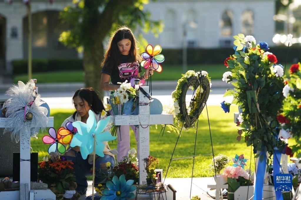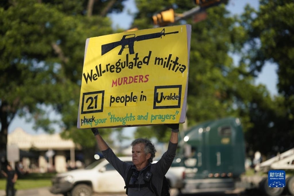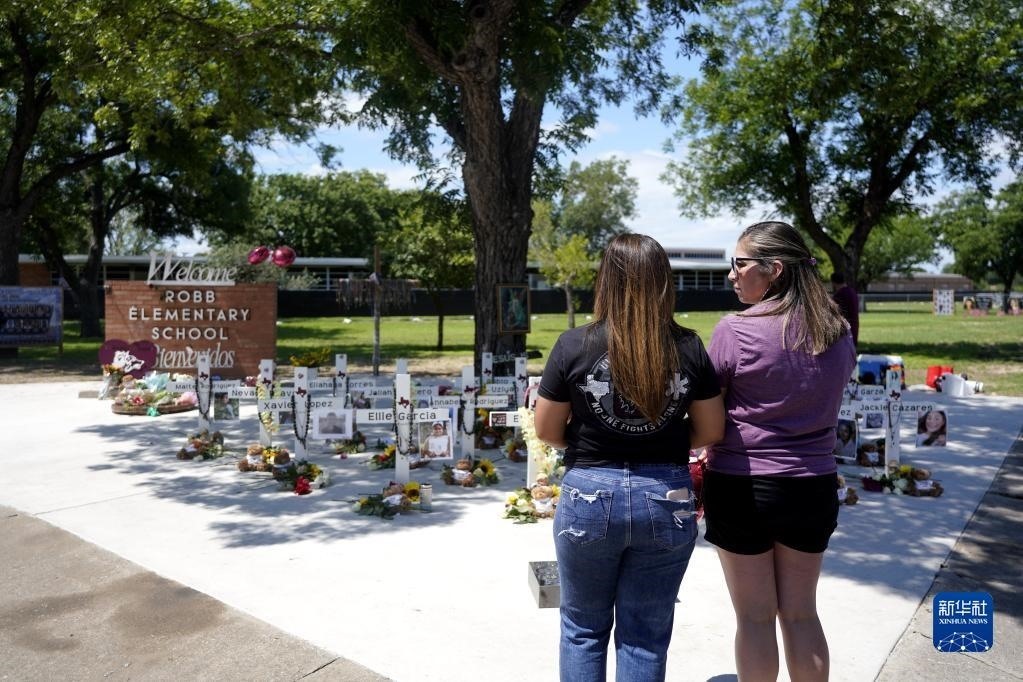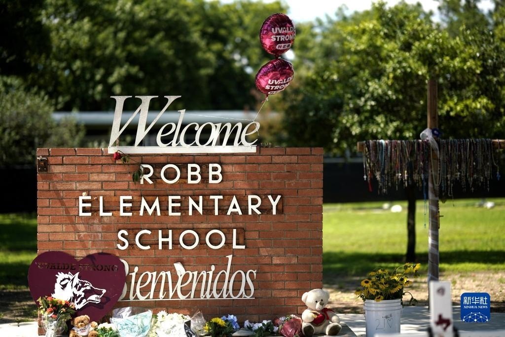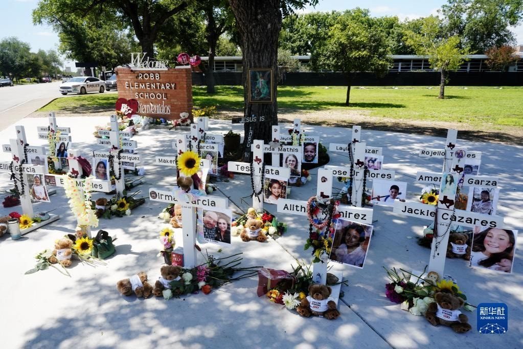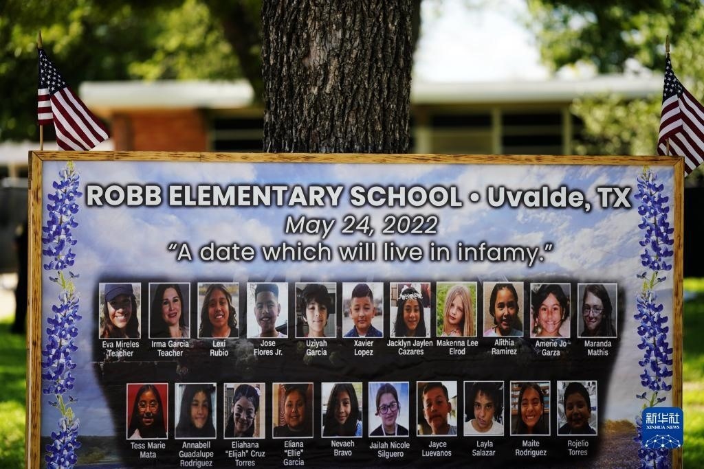 當(dāng)日是美國尤瓦爾迪大規(guī)模校園槍擊事件一周年。2022年5月24日,19名學(xué)生和2名教師在尤瓦爾迪市羅布小學(xué)槍擊事件中遇難。