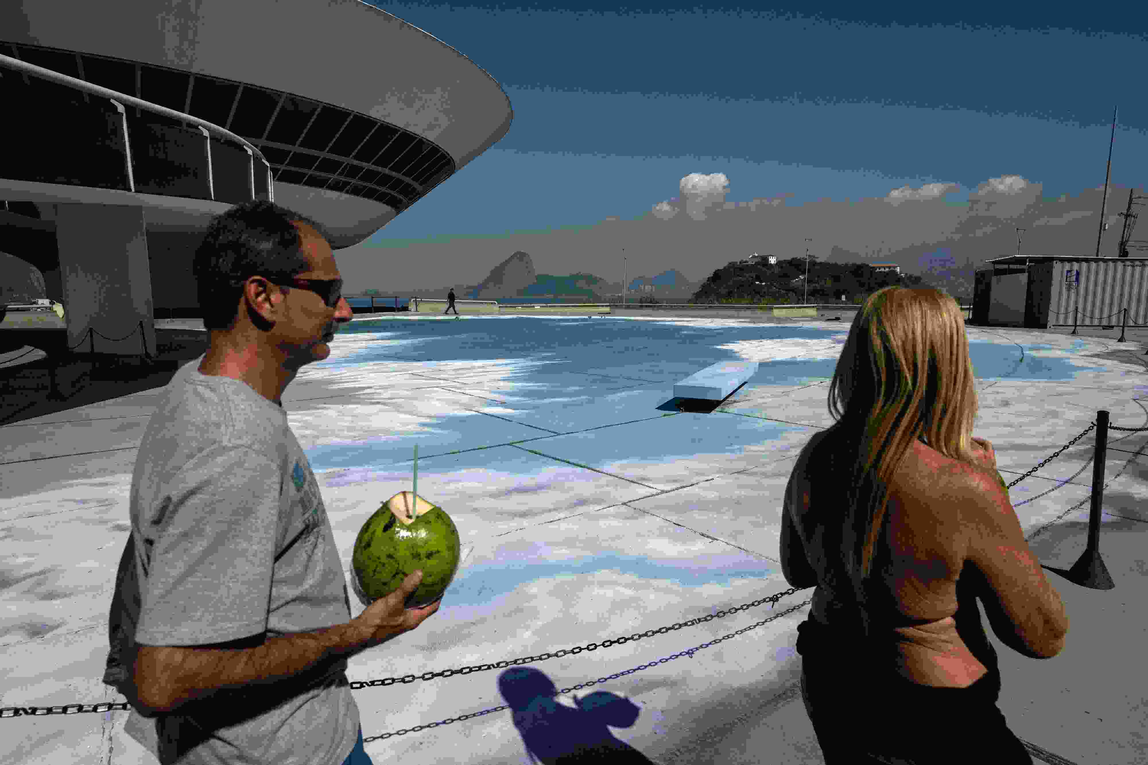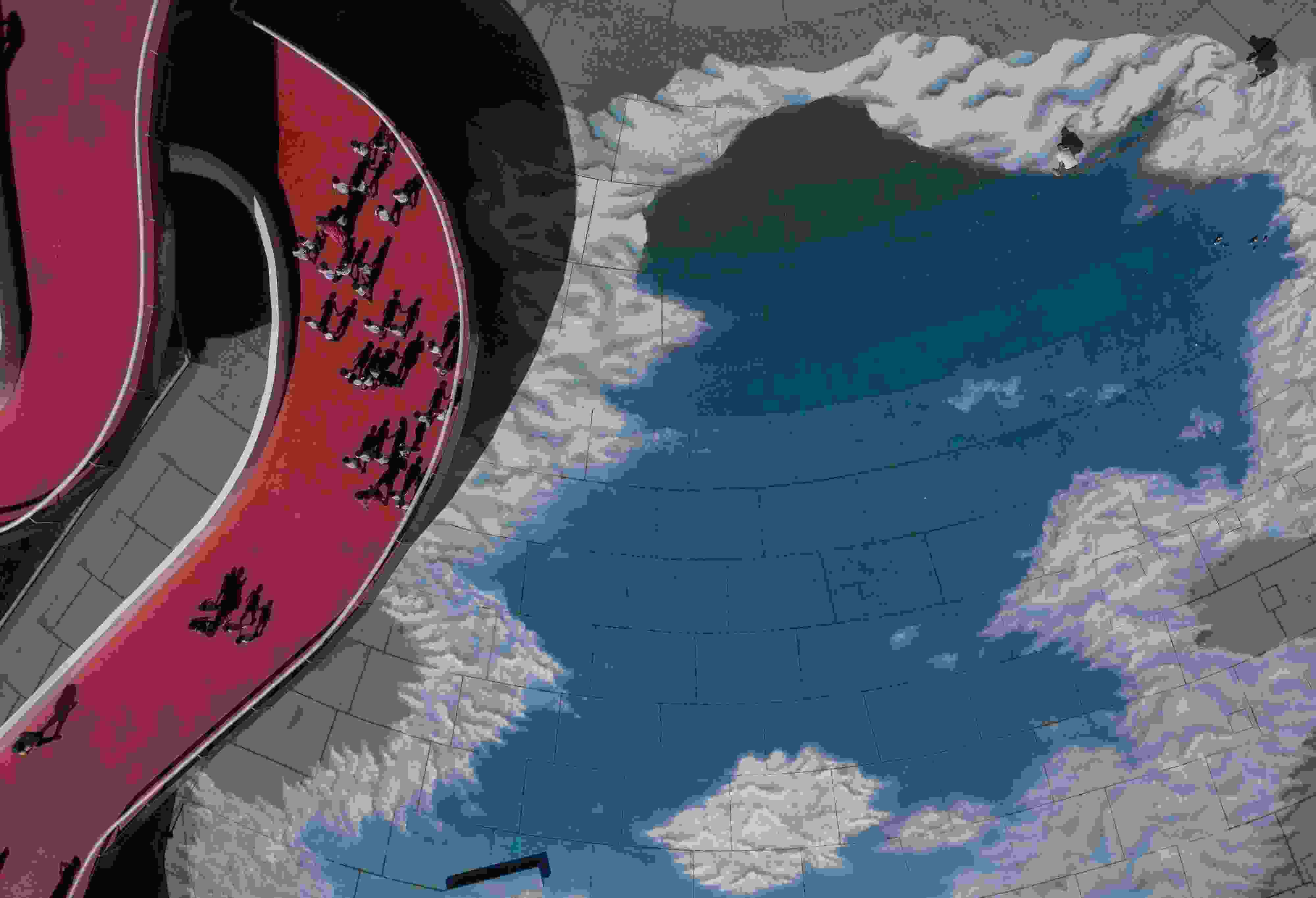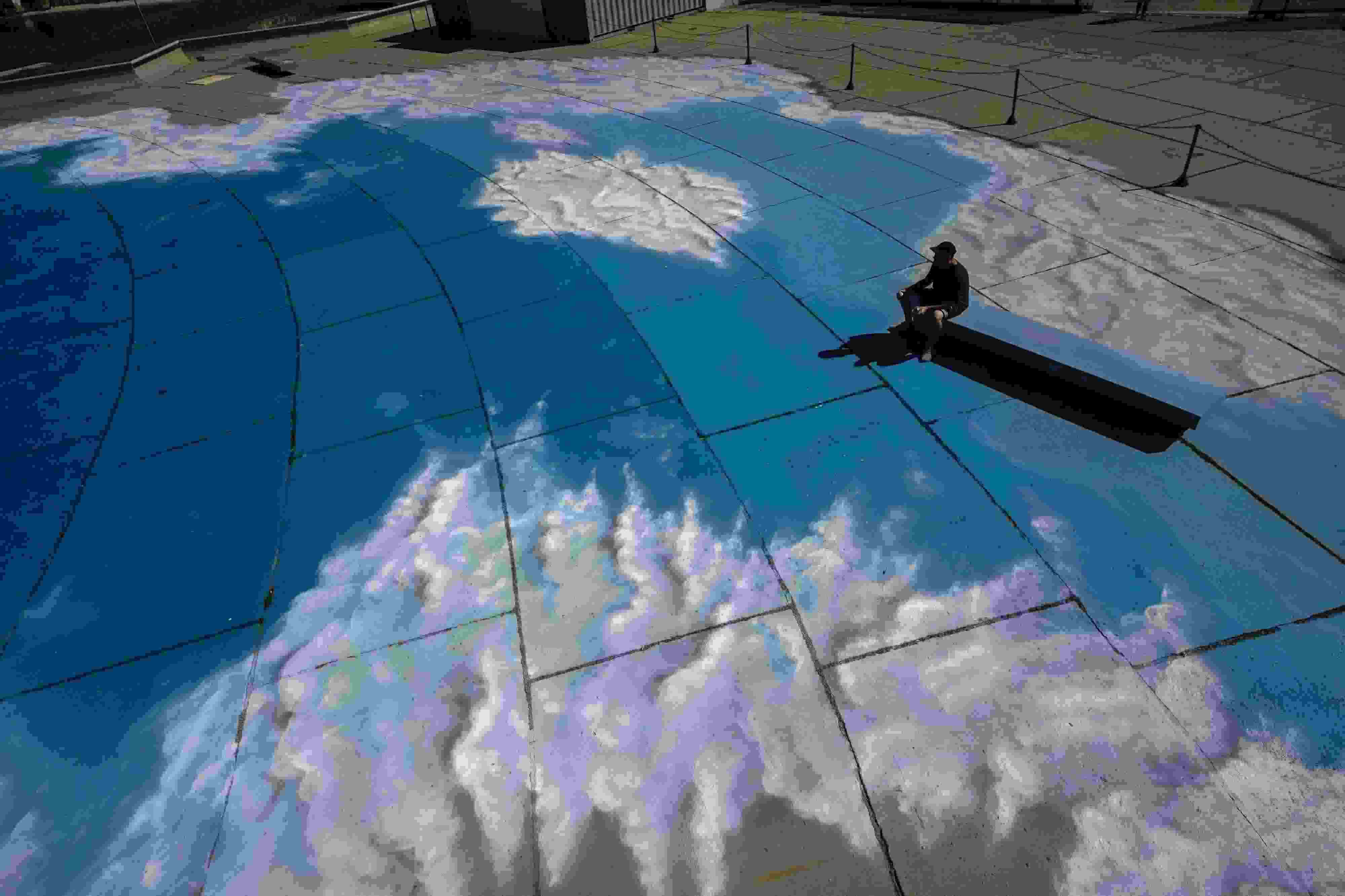 當?shù)貢r間2023年6月6日,巴西里約熱內盧,藝術家在地面上繪制“藍天白云”。 視覺中國