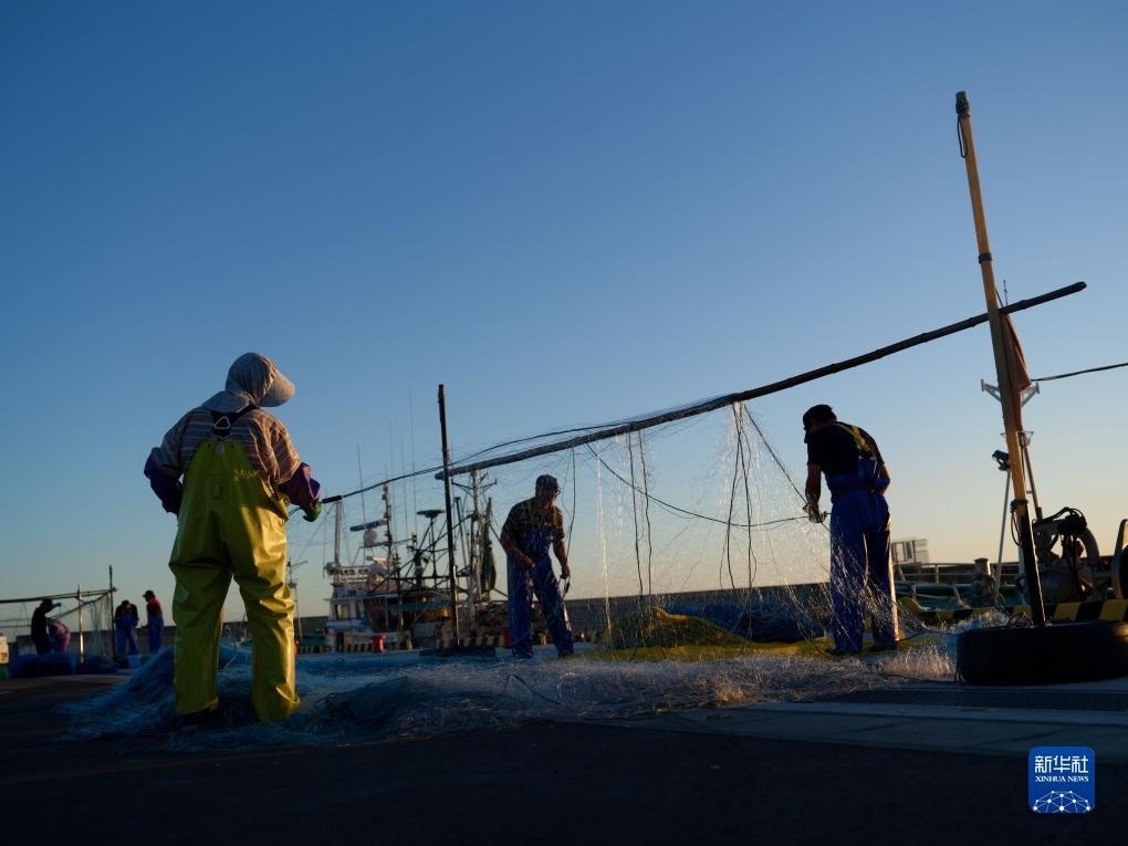 8月23日,捕魚歸來的漁民在日本福島縣新地町的漁港晾曬漁網(wǎng)。新華社記者 張笑宇 攝