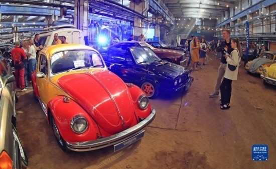 9月2日,人們?cè)诎锥砹_斯明斯克參觀老爺車。