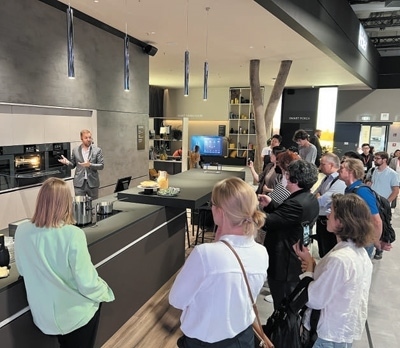 在2022年柏林國際消費(fèi)電子展期間,參觀者在卡薩帝展臺前了解智能廚房設(shè)備。本報記者 李 強(qiáng)攝