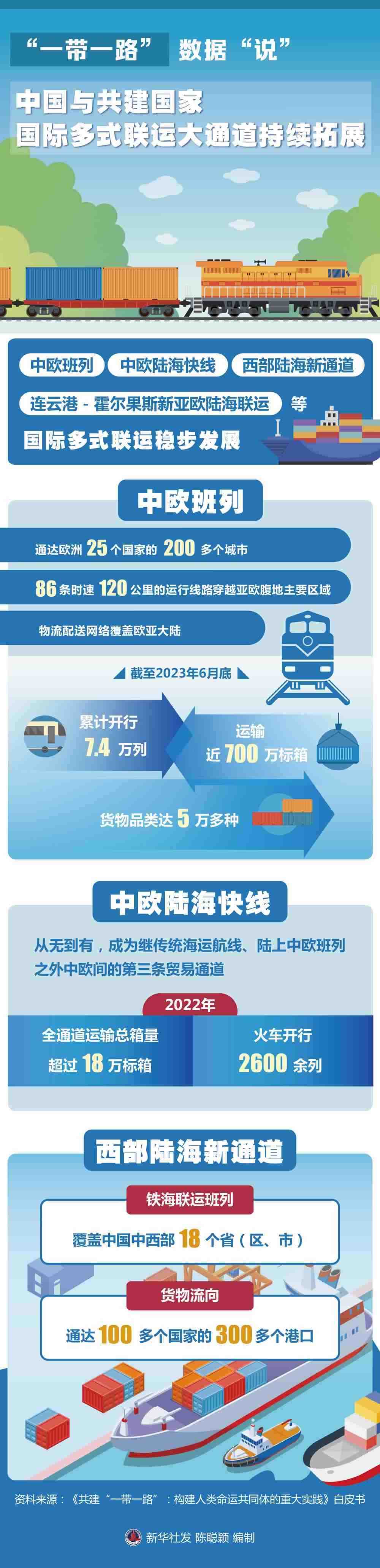 國(guó)際多式聯(lián)運(yùn)大通道持續(xù)拓展。中歐班列、中歐陸海快線、西部陸海新通道、連云港-霍爾果斯新亞歐陸海聯(lián)運(yùn)等國(guó)際多式聯(lián)運(yùn)穩(wěn)步發(fā)展。中歐班列通達(dá)歐洲25個(gè)國(guó)家的200多個(gè)城市,86條時(shí)速120公里的運(yùn)行線路穿越亞歐腹地主要區(qū)域,物流配送網(wǎng)絡(luò)覆蓋歐亞大陸;截至2023年6月底,中歐班列累計(jì)開(kāi)行7.4萬(wàn)列,運(yùn)輸近700萬(wàn)標(biāo)箱,貨物品類達(dá)5萬(wàn)多種,涉及汽車整車、機(jī)械設(shè)備、電子產(chǎn)品等53大門類,合計(jì)貨值超3000億美元。中歐陸??炀€從無(wú)到有,成為繼傳統(tǒng)海運(yùn)航線、陸上中歐班列之外中歐間的第三條貿(mào)易通道,2022年全通道運(yùn)輸總箱量超過(guò)18萬(wàn)標(biāo)箱,火車開(kāi)行2600余列。西部陸海新通道鐵海聯(lián)運(yùn)班列覆蓋中國(guó)中西部18個(gè)?。▍^(qū)、市),貨物流向通達(dá)100多個(gè)國(guó)家的300多個(gè)港口。