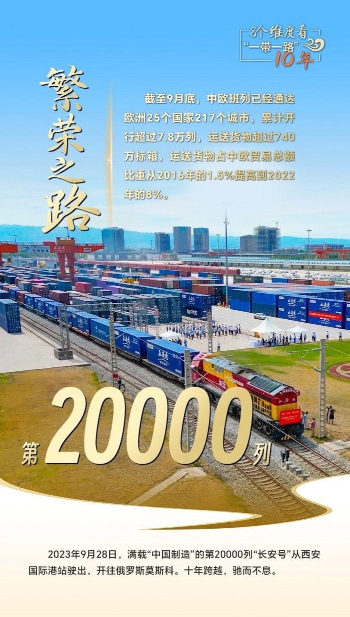 第20000列“長(zhǎng)安號(hào)”從西安國(guó)際港站駛出,給世界送去“中國(guó)制造”;中老鐵路突破重山阻隔,成為國(guó)際物流的“黃金通道”;蒙內(nèi)鐵路聯(lián)通東西,是東非鐵路網(wǎng)的開(kāi)端,更是一條充滿(mǎn)希望的經(jīng)濟(jì)走廊……一個(gè)個(gè)合作豐碑,搭建起高效的貿(mào)易通道網(wǎng)絡(luò)平臺(tái),助力各國(guó)走好走穩(wěn)“一帶一路”這條繁榮之路。